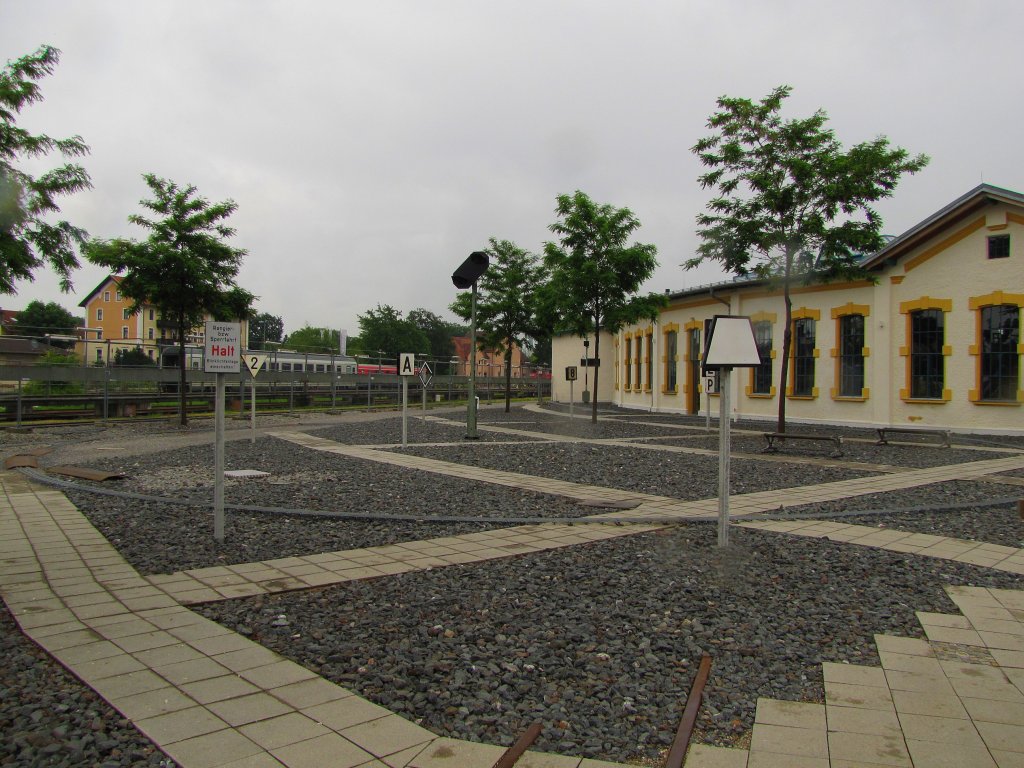 Aufgestellte Tafeln und Signale vor der Lokwelt Freilassing; 27.05.2011