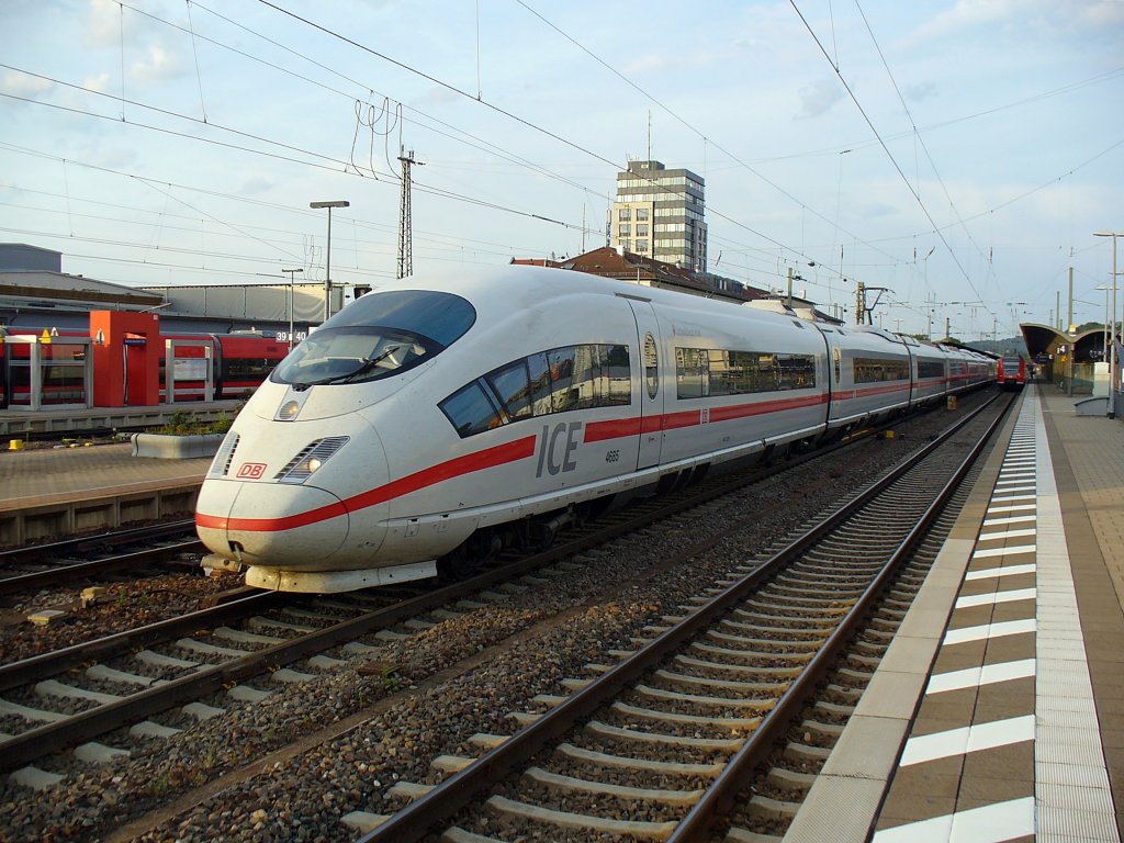 Bei Abenddämmerung verlässt 406 085 (Schwäbisch Hall) als ICE 9550 Frankfurt (Main) - Saarbrücken am 12.07.2011 Kaiserslautern Hbf