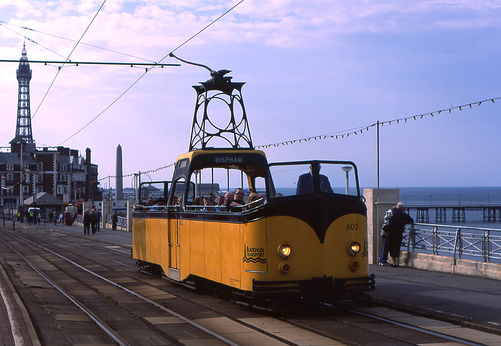 Blackpool "Open Boat" 602 auf Sonderfahrt nach Bispham kurz nach Verlassen der zentralen Station North Pier. Aufnahme an der North Promenade, 05.09.2010. Aktuell stehen noch zwei Eindecker und ein Doppeldecker als Cabrio für Sonderfahrten im Einsatz. Diese Wagen können jederzeit bei privaten Sonderfahrten zum Einsatz kommen, erhöhte Wahrscheinlichkeit, daß diese gemietet werden, besteht natürlich am Wochenende.
