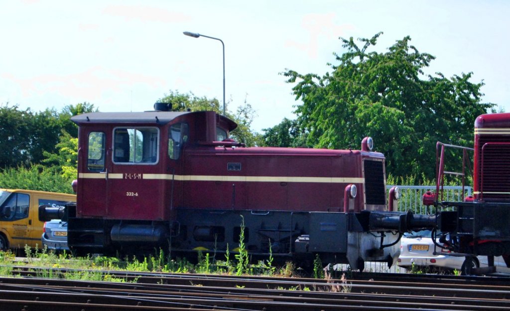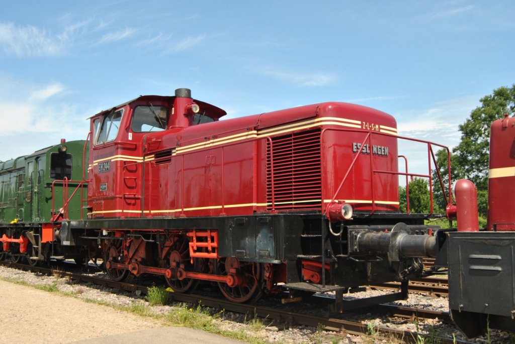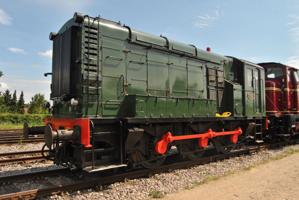 Eine kleine Diesellok 332-6 von Köf Spaniol steht in Simpelveld(NL) bei Sommerwetter.