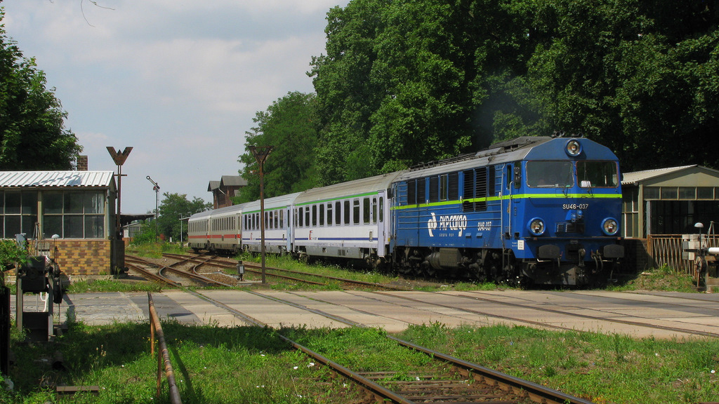 Hannes muss noch viel lernen! Weil er den Fahrplan in Lübbenau am 10.07. nicht lesen konnte, ergab sich allerdings diese Aufnahme. Denn anstatt mitzufahren, fuhren wir dem Wawel (EC 249) nach Krakau vorraus und konnten ihn mit 20 Minuten Verspätung (Grund wohl in Cottbus zu suchen) bei den letzten Metern auf deutschem Boden ablichten.