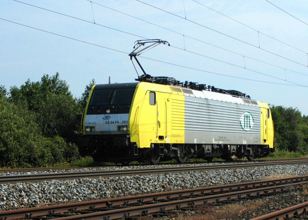 MRCE Dispolok ES 64 F4-203 (E 189 203), vermietet an ITL, auf Leerfahrt in Richtung Bremen (Diepholz, 12.07.11).