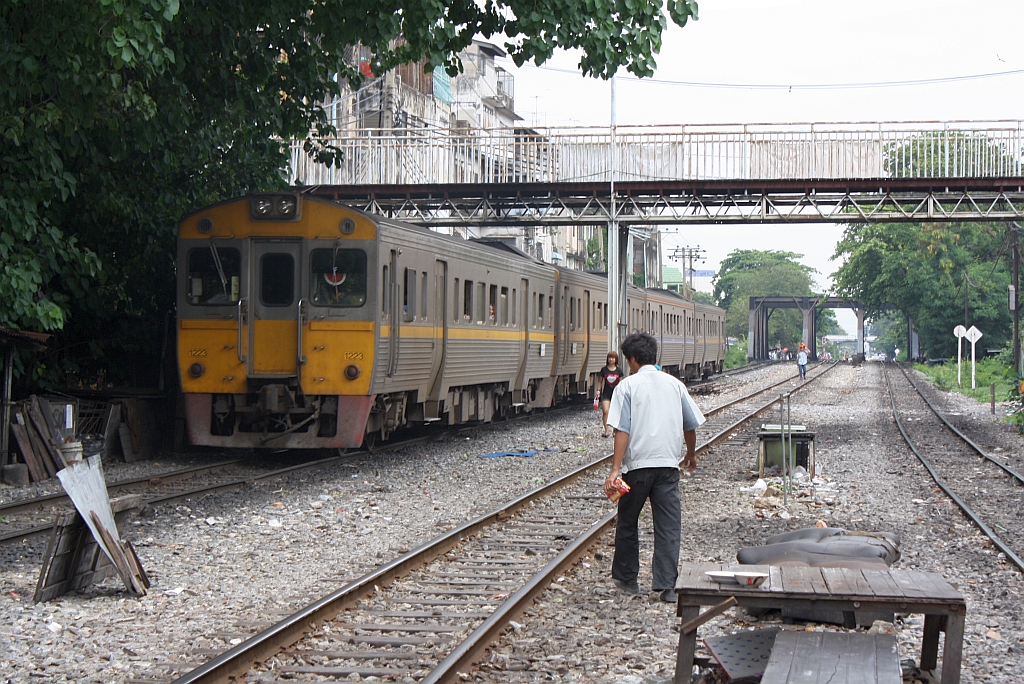 ORD 209 nach Lop Buri mit dem NKF 1223 am Schluß am 18.März 2011 im Ein-/Ausfahrtsbereich des Bf. Hua Lamphong.