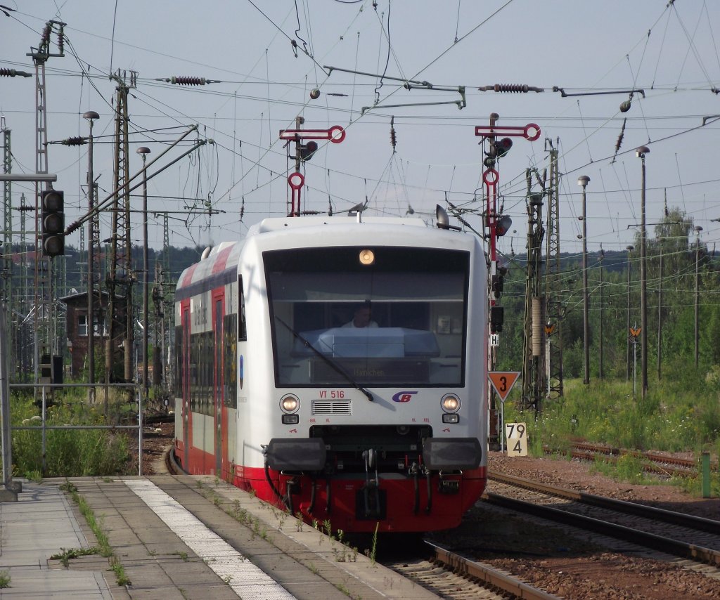 VT 516 der Chemnitzer CityBahn erreicht am 10. Juli 2011 als CB nach Hainichen den Chemnitzer Hbf.