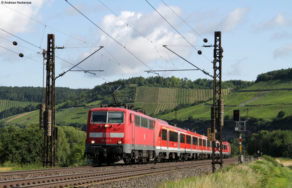111 221-8 und 220-0 mit dem RE 4635 (Frankfurt(M) Flughafen Regionalbf-Würzburg Hbf) bei Himmelstadt 24.6.11