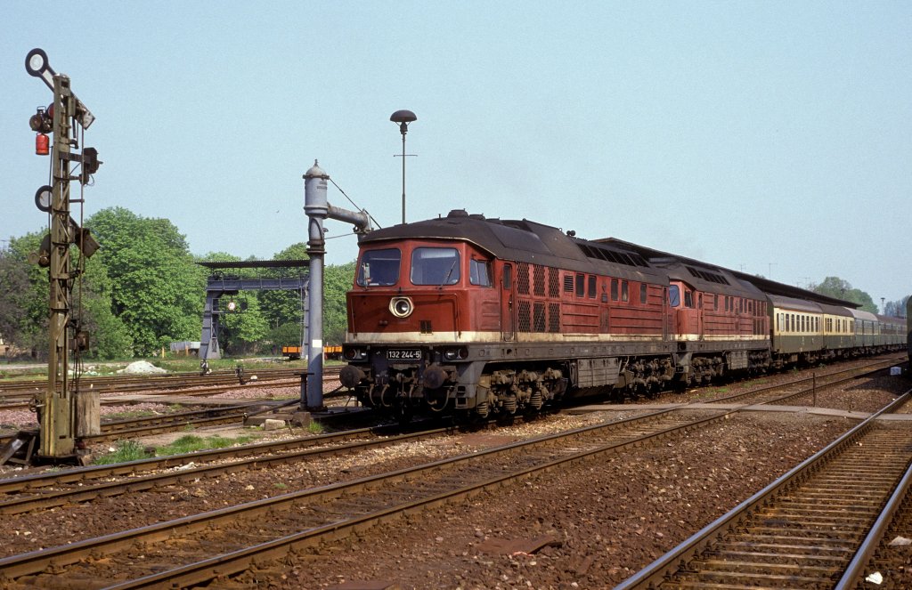 Alles war möglich um die Wendezeit herum. So konnte auch ein ehemals Rostocker S-Bahn-Zug von Halle in Richtung Kassel laufen. Mit 142 207 kommt so eine Fuhre am 08.03.92 durch Röblingen am See.