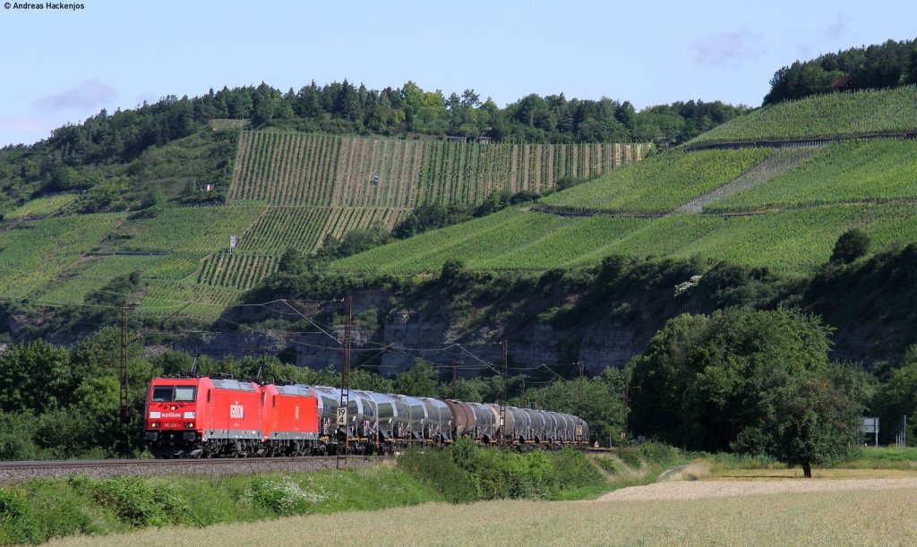 185 220-1 und 060-1 mit einem Kesselwagenzug, der fast nur aus neuen KEwa besteht bei Himmelstadt 24.6.11 Das war der zweite Güterzug den ich erst gesehen habe und dann gehört ;-)