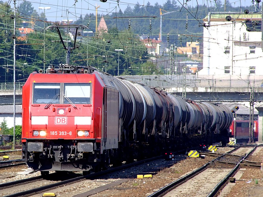 185 393-6 zieht bei Passau einen Kesselwagenzug Richtung Österreich;110716