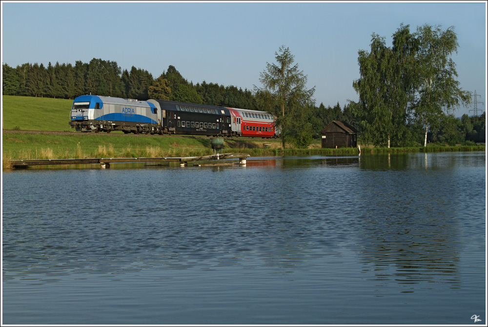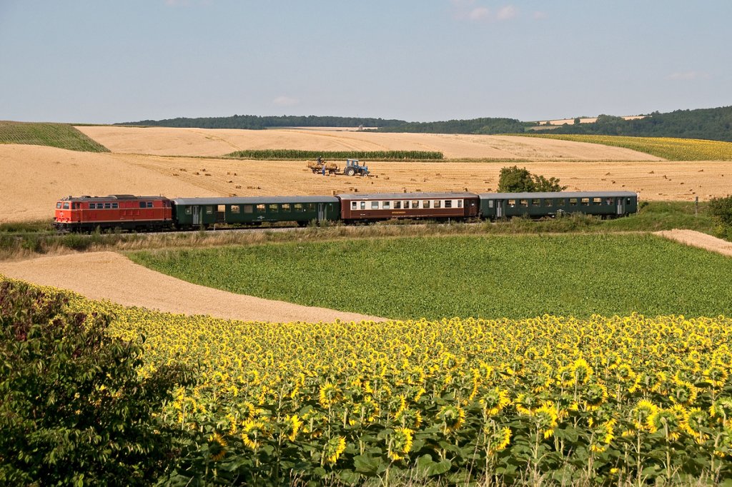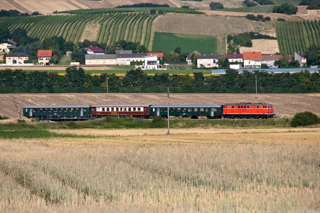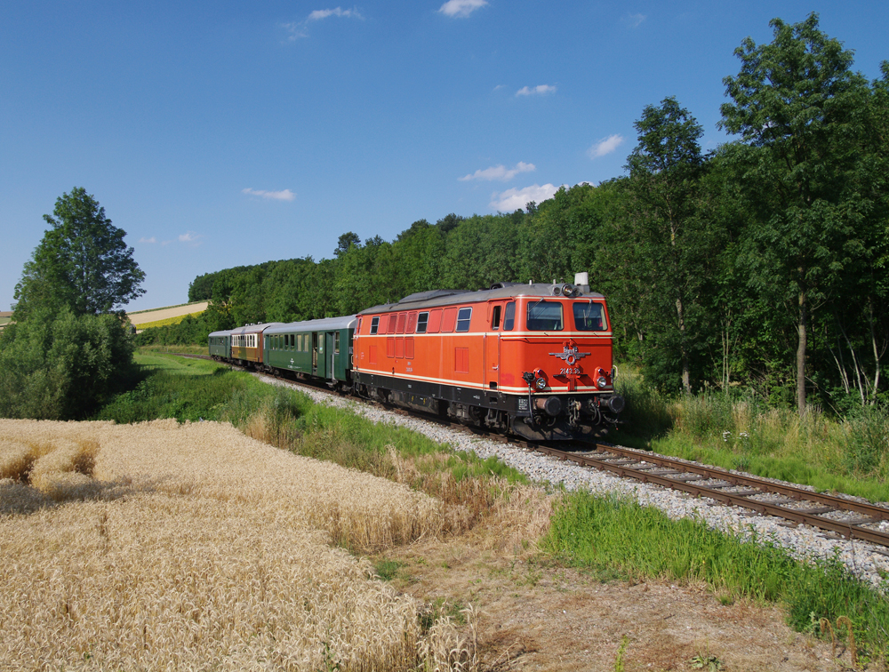 Die 2143.35 hat mit dem EZ 7390 den Scheitelpunkt bei Hetzmannsdorf erreicht, und ist am 16.07. unterwegs weiter nach Ernstbrunn.