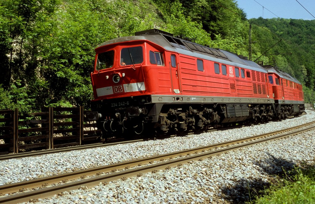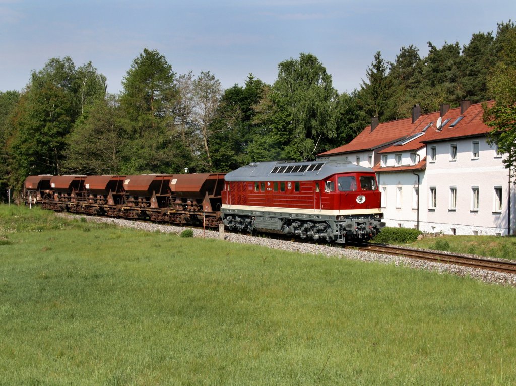 Die 232 088 am 21.05.2011 mit einem Schotterzug unterwegs bei Hirschau.