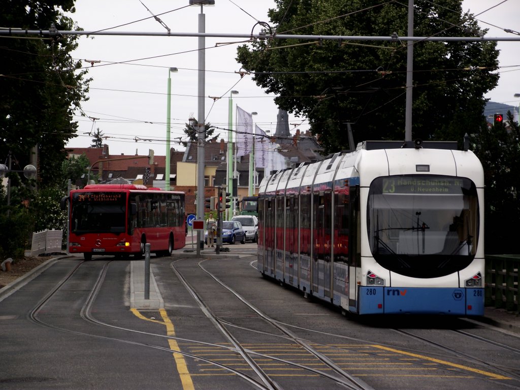 Bus trifft auf RNV Variobahn in Heidelberg am 15.07.11