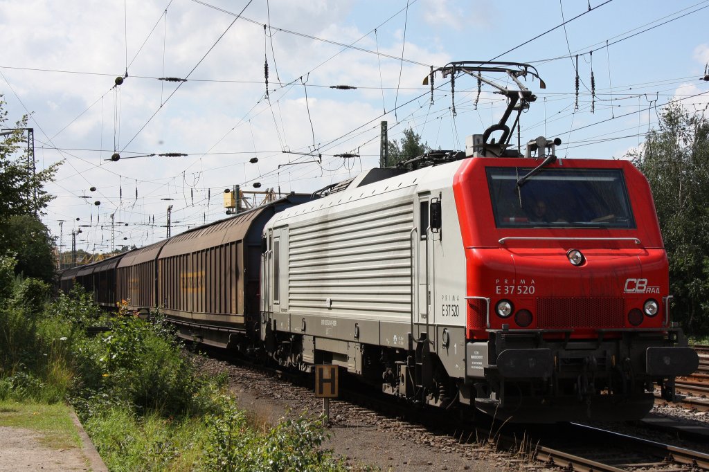 Die E 77 010 am 09.07.2011 mit einem Fotogüterzug bei der Ausfahrt aus Köthen.
