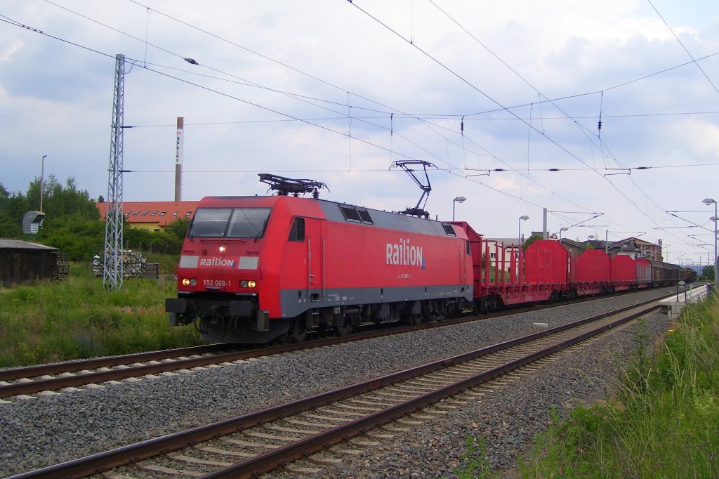 Railion 152 069-1 mit einem gemischten Güterzug Richtung Nordhausen, in Wallhausen (Helme); 10.06.2011