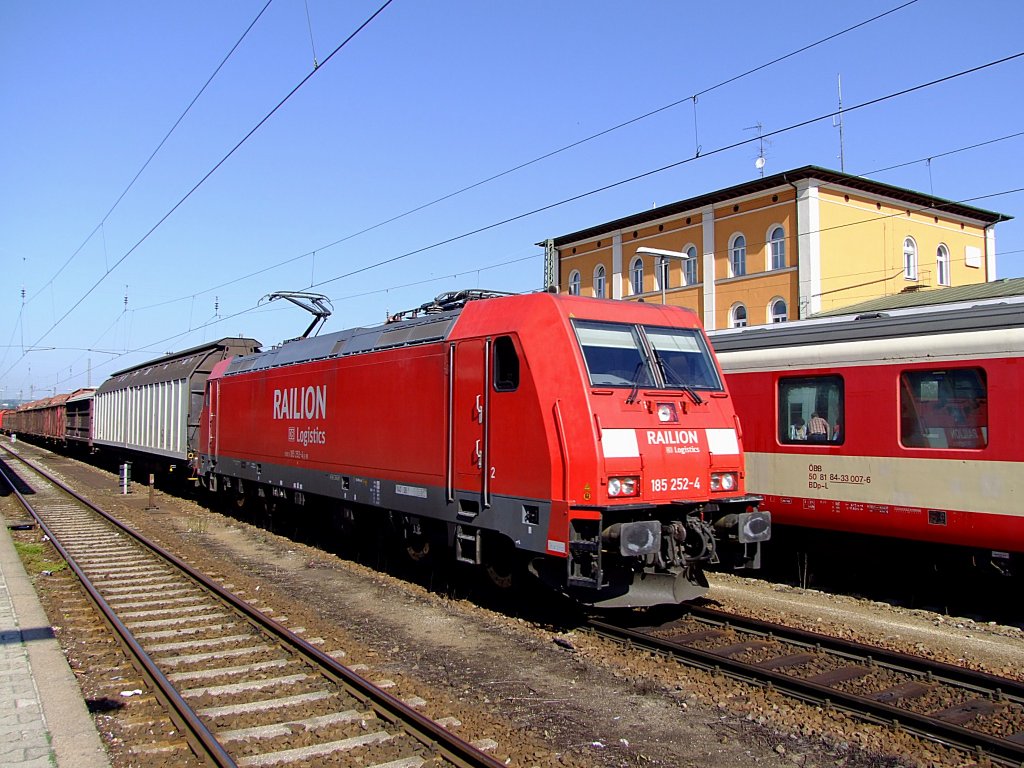 185 252-4 (Railion) zieht einen gemischten Güterzug bei Passau Richtung Österreich;110716