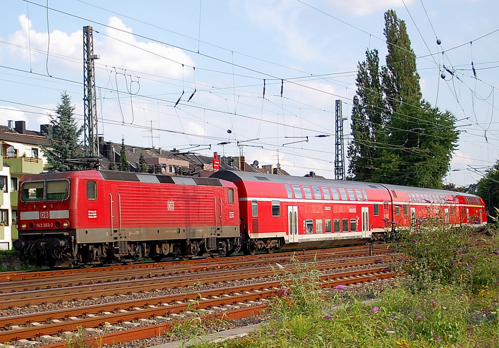 Die 143 263-2 mit der RB 27 nach Koblenz fährt aus Rheydt aus. 15.7.2011