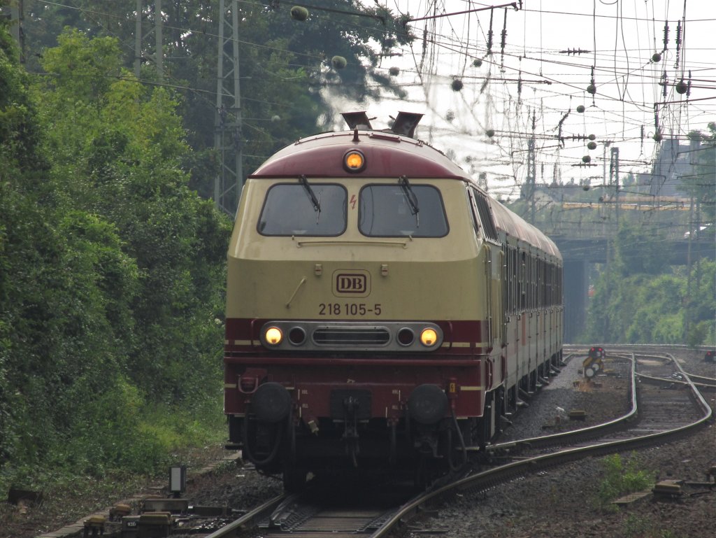 218 105-5 am 20.7.2011 kurz vor dem Bonner Hbf. Leider im totalen Gegenlicht.