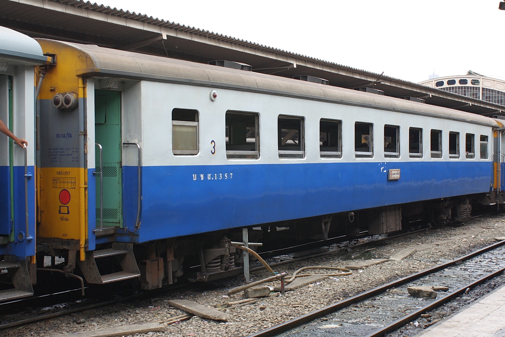 บชส.1357 (บชส. =BTC./Bogie Third Class Carriage) eingereiht im RAP 171 nach Sungai Kolok am 18.März 2011 im Bf. Hua Lamphong.