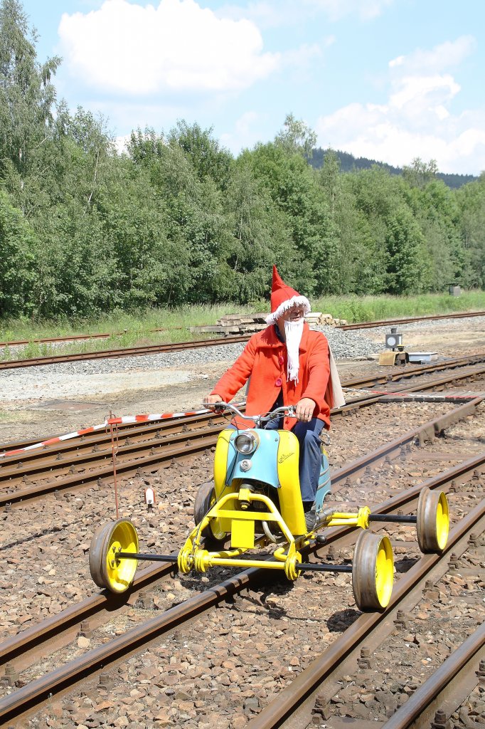 Der Sandman kommt mit dem SIMSON KR 50 Schienenmoped, gesehen am 05.06.2011 im Eisenbahnmuseum Schwarzenberg.