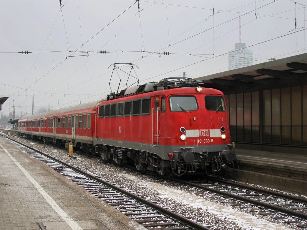 Die 110 363 mit einer RB am 07.01.2009 im Augsburger Hbf.