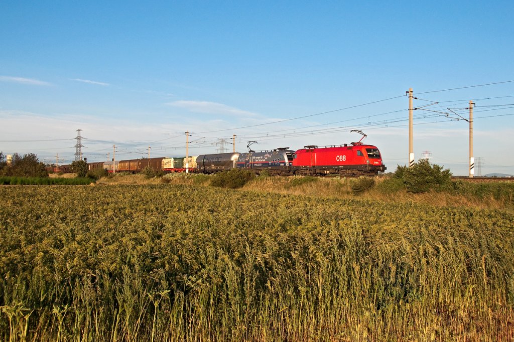 1016.023 "Kyoto" und 1116.158 sind bei herrlichstem Fotowetter mit ihrem GAG 58664 auf dem Weg von Eisenerz nach Leoben und haben soeben Admont passiert. Im Hintergrund das Stift Admont. 17.07.2011