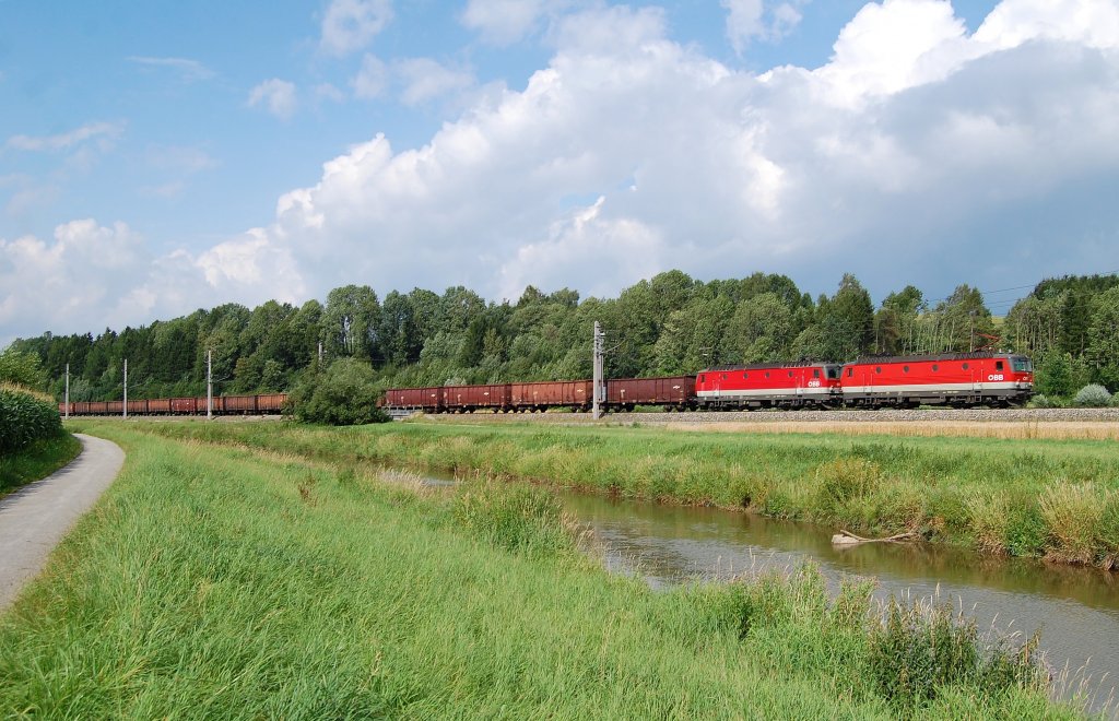 Mit einem Güterzug sind am 21.07.2011 1144 215 und 1144 234 in Wartberg an der Krems durchgefahren.