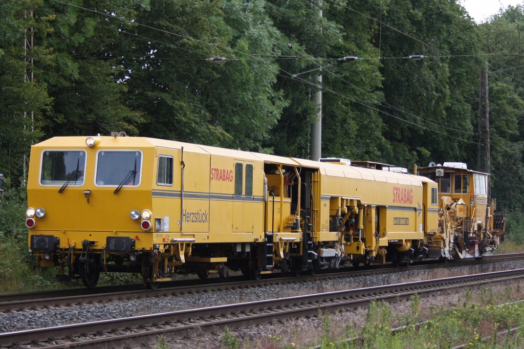 Strabag Stopfmaschiene "Herzstück"+Strabag SSP am 16.7.11 bei der Durchfahrt durch Ratingen-Lintorf.