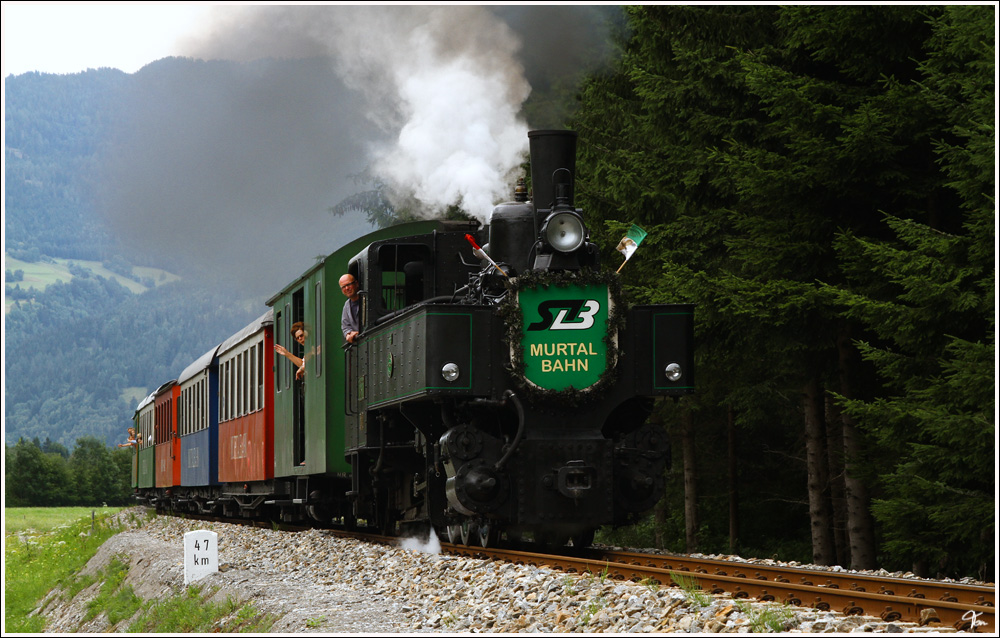 STLB BH1 fährt mit einem Dampfbummelzug von Murau nach Tamsweg.