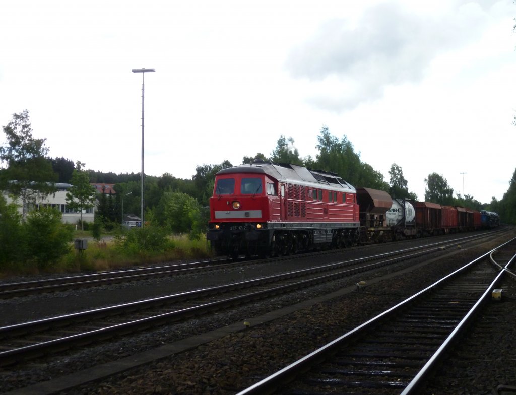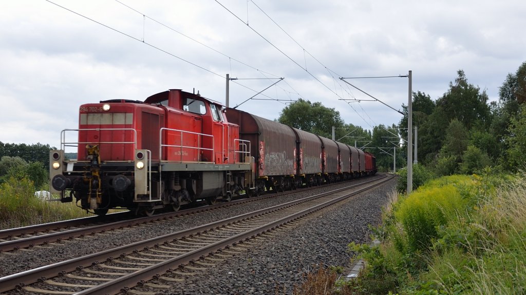 22.07.2011 BR 294 mit gemischtem Güterzug unterwegs in Richtung Zwickau.