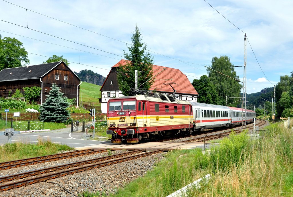 371 001 Lucka der CD ist mit EC 173 nach Villach HBF in Richtung Bad Schandau unterwegs.Das Bild entstand bei Kurort Rathen am 19.7.2011