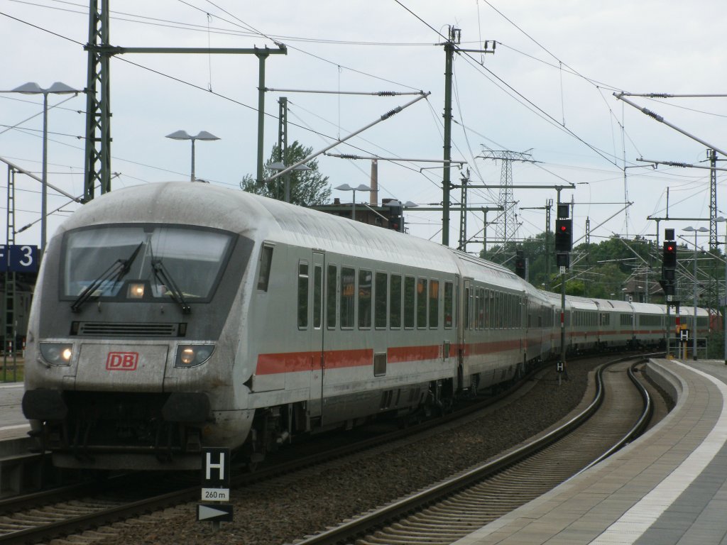 Der IC 2213 aus Binz nach Stuttgart schlängelte sich,am 28.Mai 2011,in den Schweriner Hbf.
