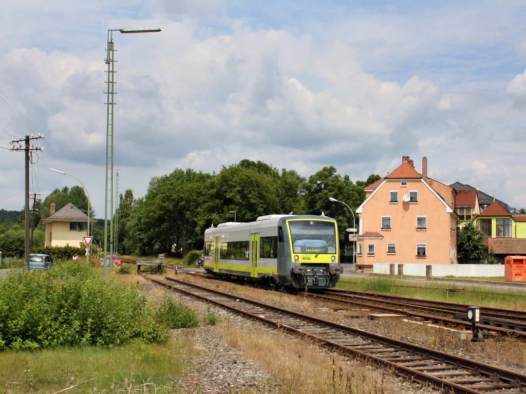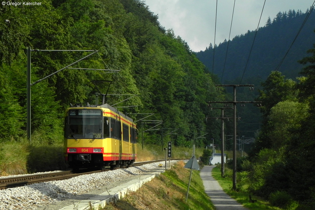 Wagen 804 als S6 bzw. ab Pforzheim Hbf als S5 von Bad Wildbad bis nach Karlsruhe. Aufgenommen am 02.07.2011 bei Höfen Nord. Der Ausstieg in Höfen Nord ist nur an den ersten beiden Türen möglich.