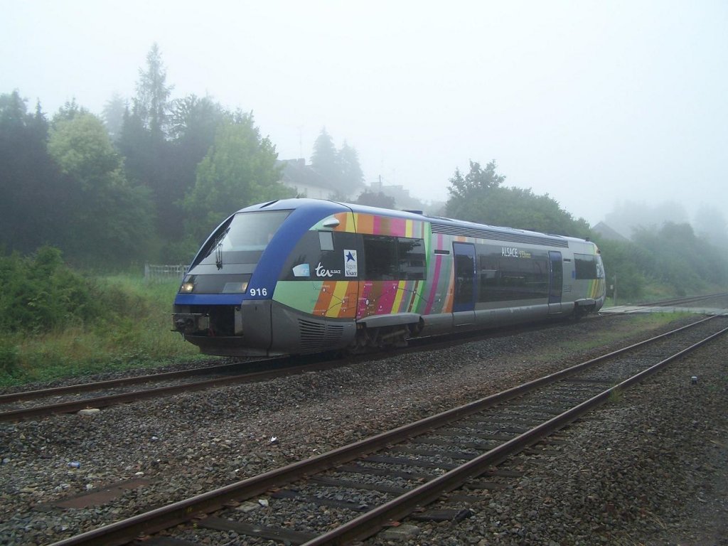 Der ganz neue BGC 82632 hat noch nicht die TER Alsace Aufkleber bekommen. Diese Triebwagen übernehmen jeden Tag den letzten Zug Strassburg - Saargemünd. Oermingen am 08/07/11.