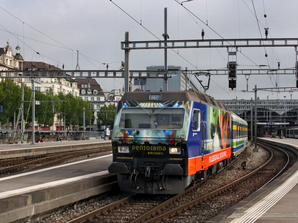 Die Re 456 092 am 28.06.2009 mit einem Voralpen Express in Luzern.