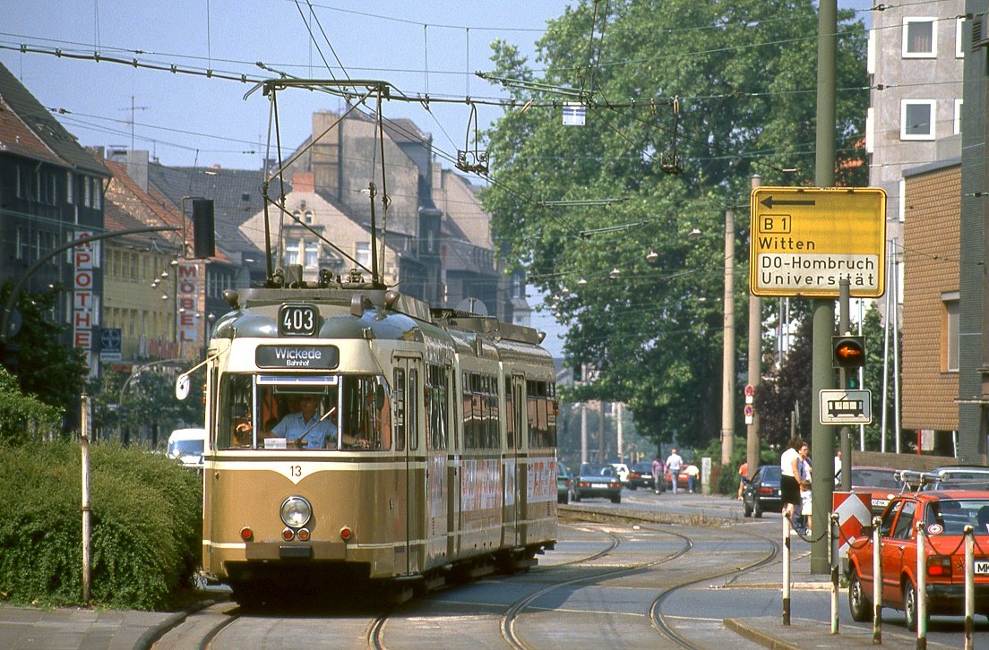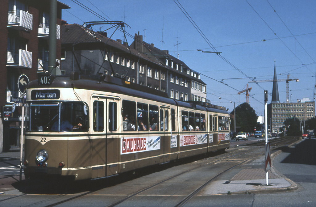 Dortmund Tw 22 in der Rheinischen Straße, Ecke Möllerstraße, 29.07.1991.