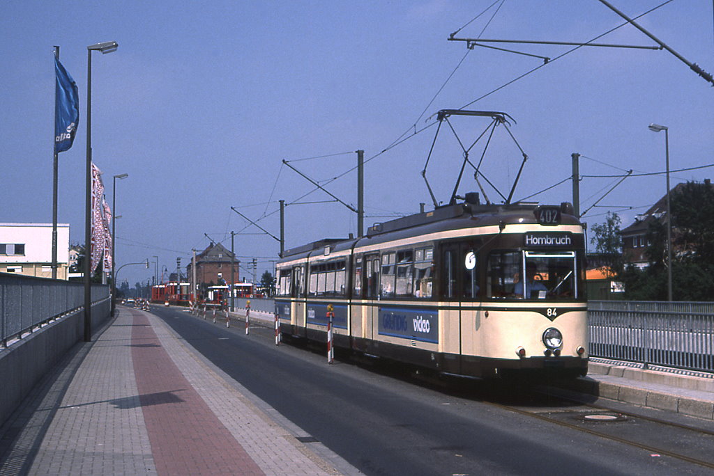 Dortmund Tw 84 mit einer abweichenden, elagenten Lackierung in der Bornstraße, 18.06.1988.