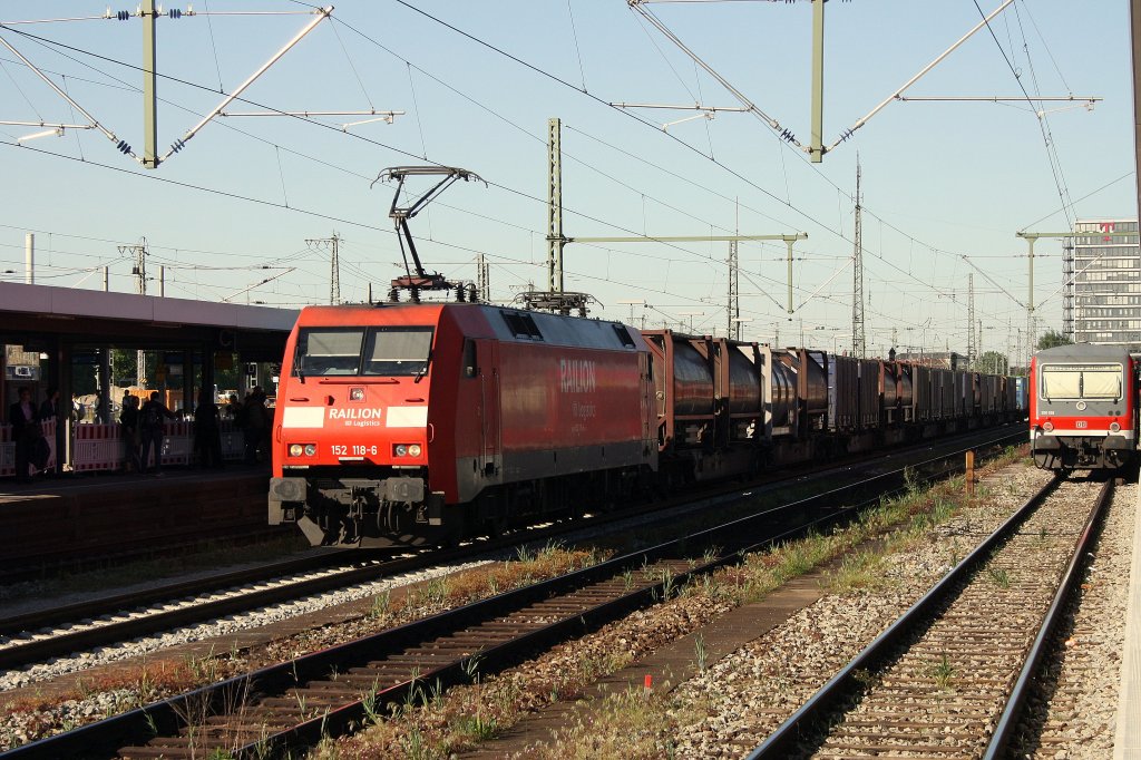 Durchfahrt in München Ost Richtung Norden am 09.05.2011: BR 152 118-6 mit ihrem GZ.