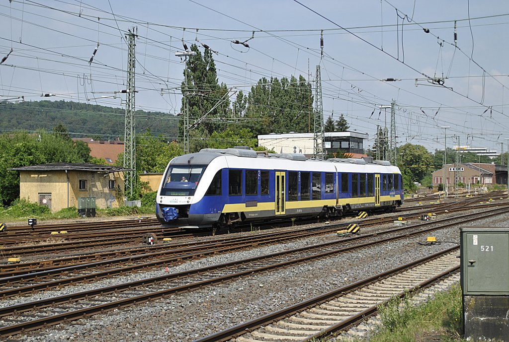 Ein Triebwagen der BR 648, der Eurobahn bei der Einfahrt in Hameln am 12.07.2011.