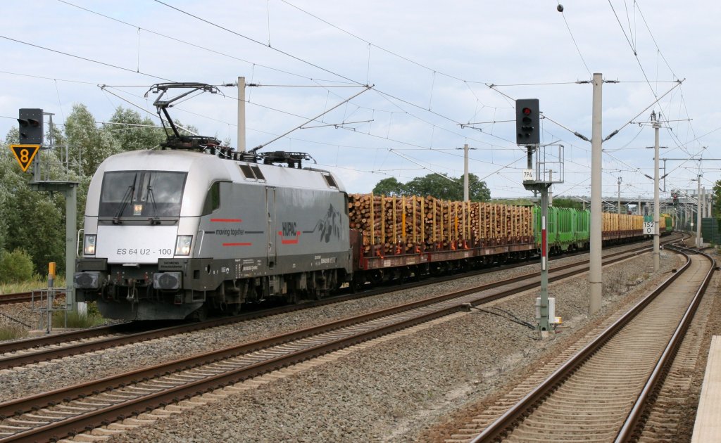 ES 64 U2-100 Hupac mit Holzzug in Buschow am 23.07.2011