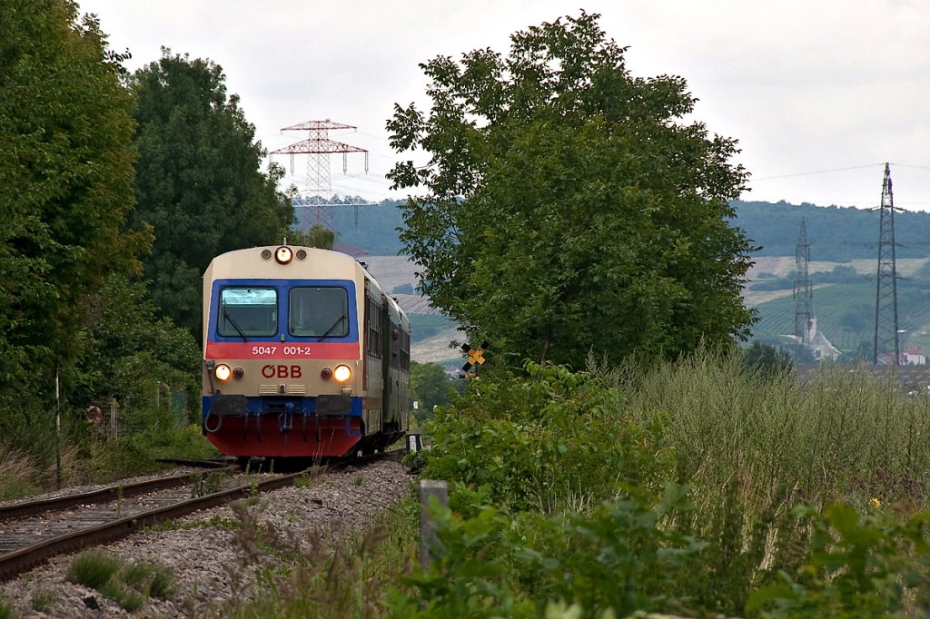 EZ 7399 mit 5047 001 ist von Ernstbrunn nach Korneuburg unterwegs. Korneuburg, am 23.07.2011.