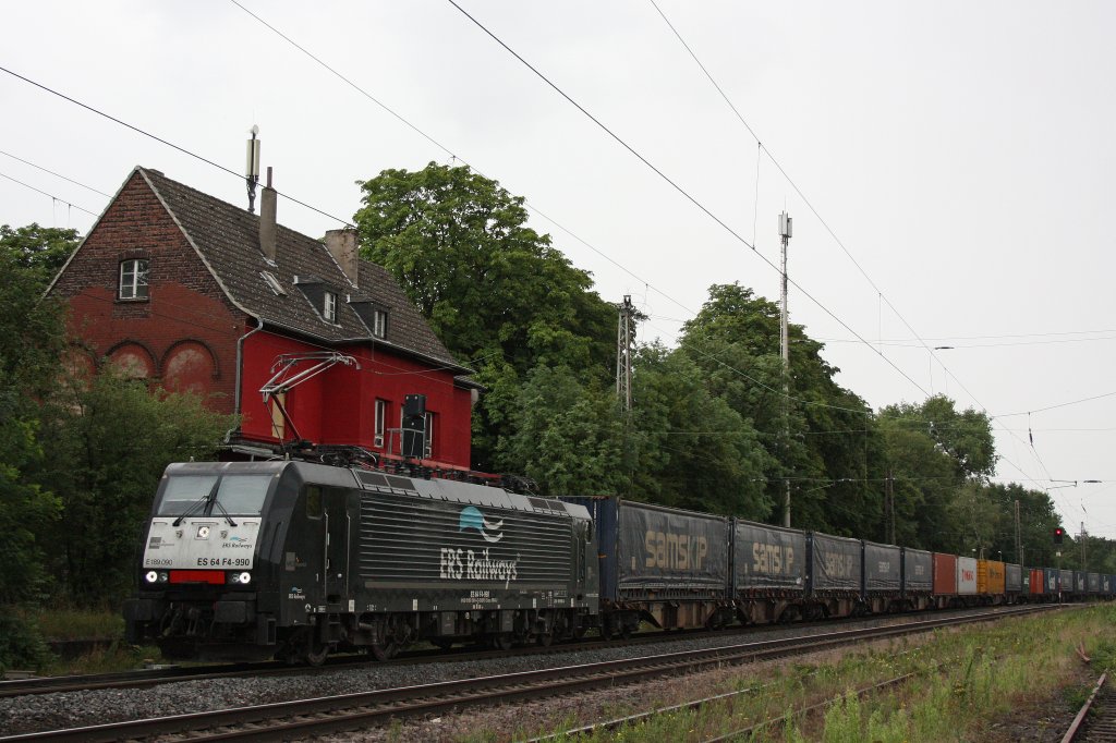 MRCE/ERS ES 64 F4-990 (E 189 090) am 19.7.11 mit einem Güterzug bei der Durchfahrt durch Ratingen-Lintorf.
