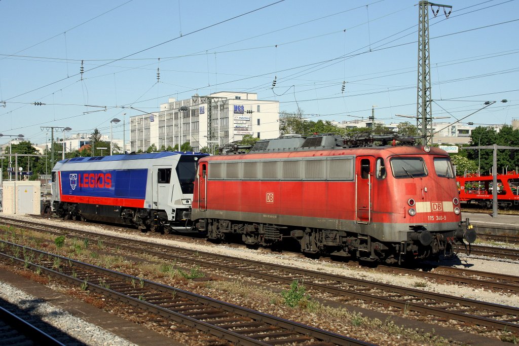 München Ost am 09.05.2011: Zu sehen sind 115 346-9 und die Maxima 263 003-6.