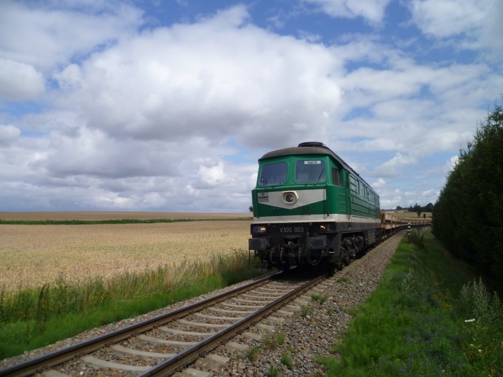 V300 003 ist hier am 23.07.11 bei der Durchfahrt in Oberkossa zusehen.