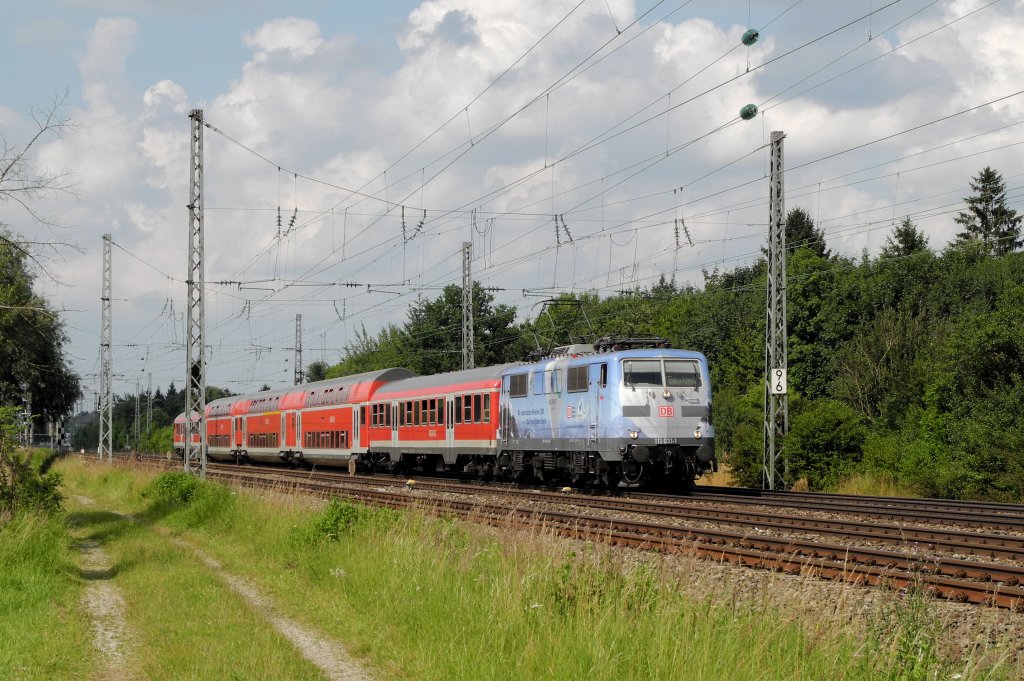 111 031 am 05.07.11 mit einem RE nach Innsbruck am Münchner-Westkreuz
