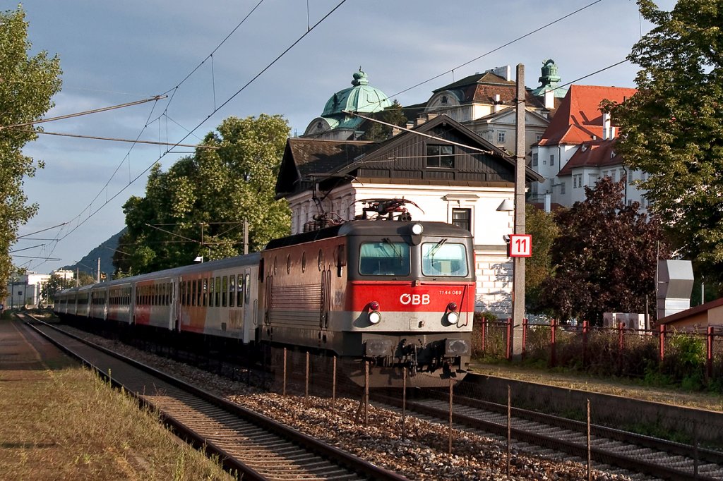 1144 069 ist mit REX 7138 von Wirn FJB nach Krems/Donau unterwegs. Die Aufnahme entstand am 22.07.2011 in Klosterneuburg-Kierling.