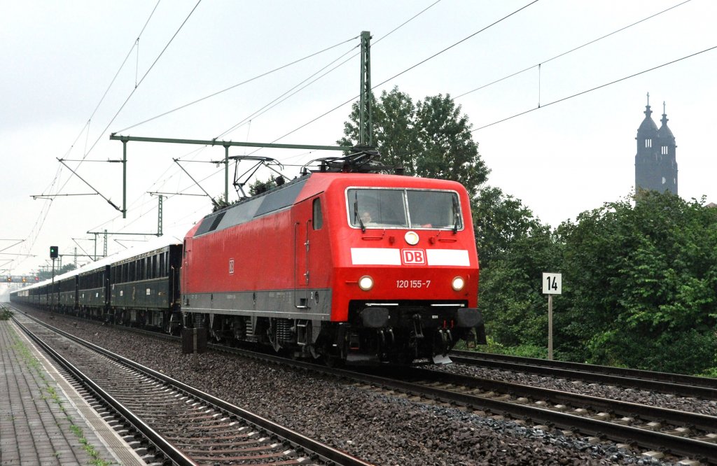120 155 hatte am 20.7.2011 die Ehre den Orient-Express zu bespannen.Der Zug durchährt Dresden-Strehlen und kommt aus der Abstellanlage Dresden-Reick,und fährt nach einem Aufenthalt in Dresden HBF weiter Richtung London.