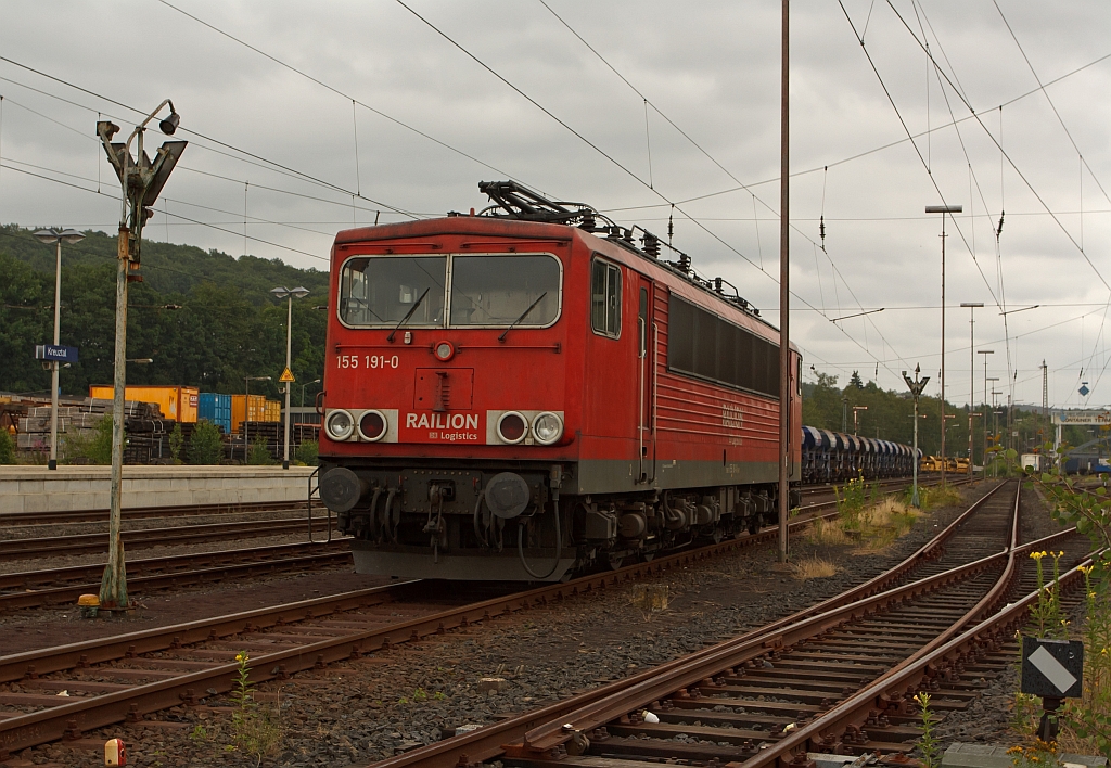 155 191-0 der RAILION Logistics abgestellt am 23.07.2011 in Kreuztal.