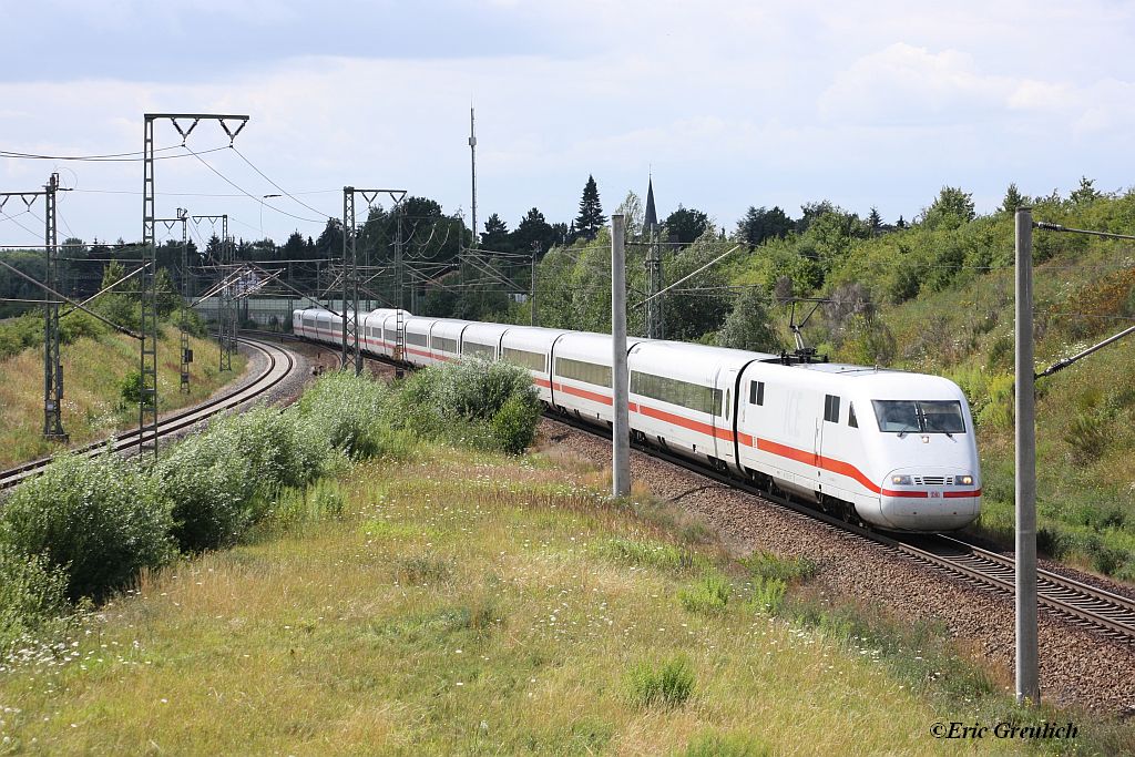 Genau unter der alten Signalbrücke in Leipzig-Mockau begegneten sich am 23.07.2011 der aus Hamburg kommende ICE 109 und ICE 890 mit Fahrtziel Hamburg-Altona.