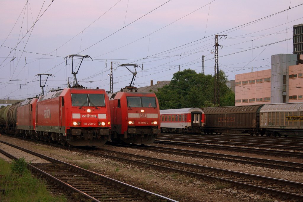Am Abend des 11.05.2011 standen 2 GZ Richtung Norden in Laim Rbf: Zum einen ein Doppel 185er und zum anderen die 152 003-0.