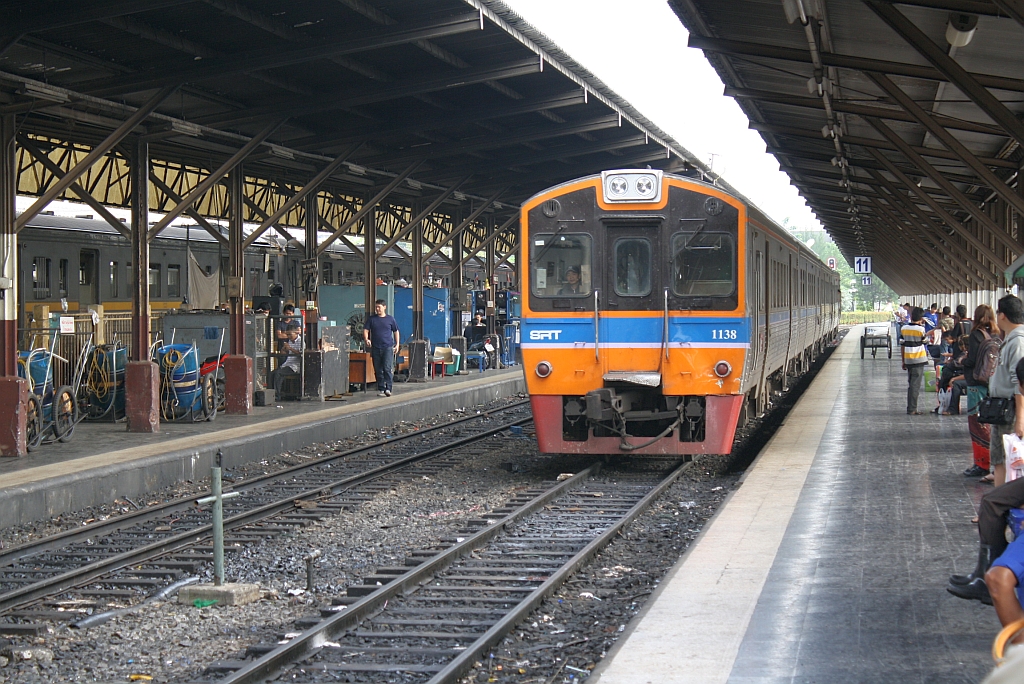 Der SP EXP 75 nach Udon Thani mit dem THN 1138 als letztes Fahrzeug wird am 19.März 2011 im Bf. Hua Lamphong auf Gleis 11 bereitgestellt.
