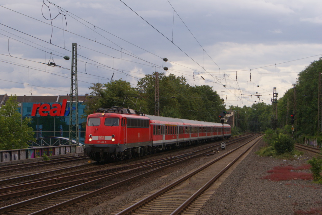 Die nun bereits ausgemusterte 110 486-8 zog am 19.07.2011 noch einen RE 4 Verstärker von Düsseldorf nach Aachen durch Düsseldorf-Bilk
